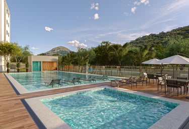 2 á 3 quartos, varanda ampla, garagem , piscina
